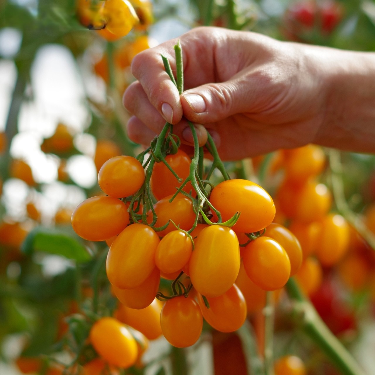 Гибрид раннеспелый, полудетерминантный. От всходов до начала плодоношения 90-95 дней. Кисти простые и полусложные, с 15-20 плодами, ярко-жёлто-оранжевого цвета. Плоды цилиндрические, гладкие, двух камерные, плотные, мясистые, массой 15-20 г, с повышенным содержанием бета-каротина. Вкус очень сладкий!