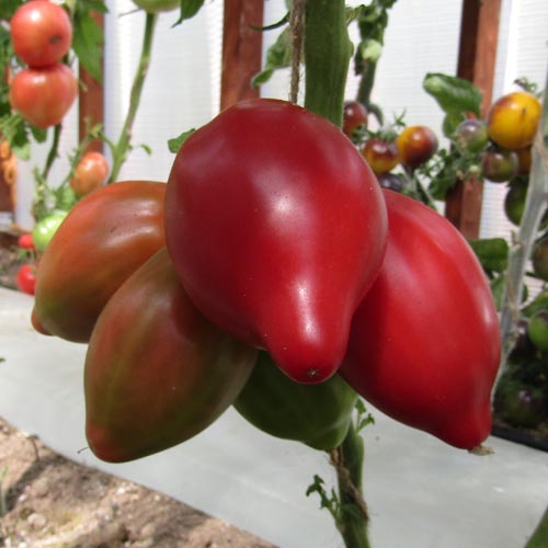 Суперурожайный, среднеспелый сорт родом из США (известен как Dwarf Desperado). Детерминантный, штамбовый куст отлично плодоносит в горшках и контейнерах. Высота растения в теплице около 85-95 см, в ограниченном объеме грунта – 65-75 см. Созревание начинается через 110-113 дней после появления всходов. Плоды* малиновые, мясистые, с нежной и сладкой мякотью, не растрескиваются. Средняя масса 60-80 г. Сорт устойчив к комплексу заболеваний культуры, стабильно плодоносит при скачках погодных условий, не требует пасынкования.*Форма плодов может меняться в зависимости от условий.