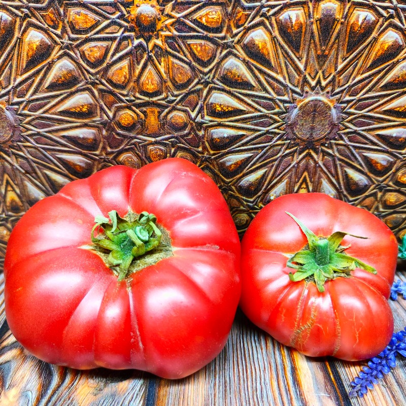 Сорт среднеспелый, в норме созревает через 105-115 дней, завязываемость высокая, отсюда отличная урожайность! Детерминантный куст высотой от 60 до 130 см, (о/г или теплица).  Лист крупный, морщинистый, простой. Плоды массой 200-400 г, цвет кожицы малиновый, мякоть плотная, ароматная. Очень вкусные салаты, соки, а так же любые заготовки на зиму.