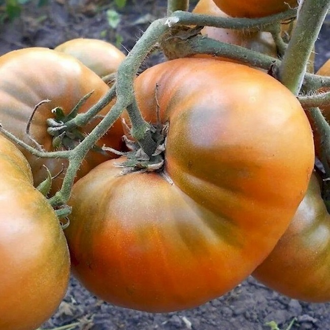 Среднеспелый, редкий сорт томата. Рекомендован для выращивания в открытом грунте и теплицах. Детерминантный, штамбовый, 0,5-0,6 м. Лист морщинистый простой. Помидоры плоскокруглой формы с пышными плечиками, массой 200-300 грамм, горчично-охристой расцветки снаружи и яркого горчичного цвета внутри. Мякоть мясистая, маслянистая, малосеменная, с вкусным зеленым гелем. Вкус насыщенный и сбалансированный, немного пряный. Очень вкусный салатный сорт! Всеобщий любимец! Болезнеустойчивость и урожайность высокие. Плодоношение до заморозков!