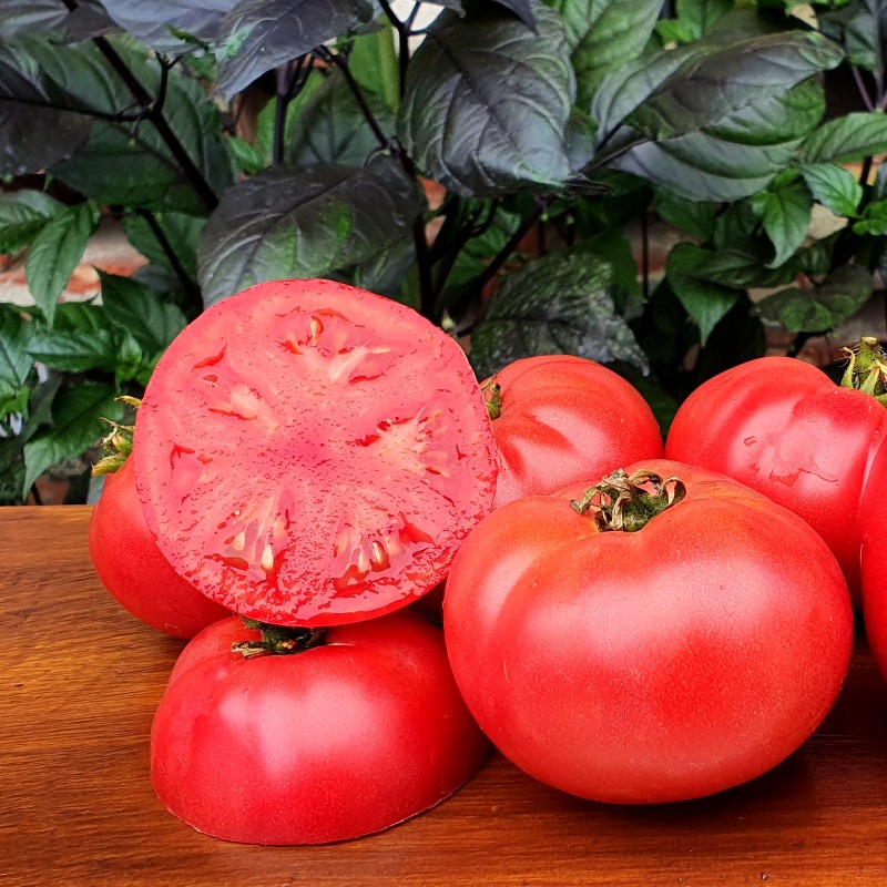 Сорт среднеспелый, в норме созревает через 105 -120 дней. Детерминантный куст высотой  от 70 до 100 см. Лист крупный, морщинистый, простой. Плоды массой 100-300 г, цвет кожицы малиновый, мякоть плотная, сочная, сладковатая, ароматная. Очень вкусные салаты, соки, а так же любые заготовки на зиму.