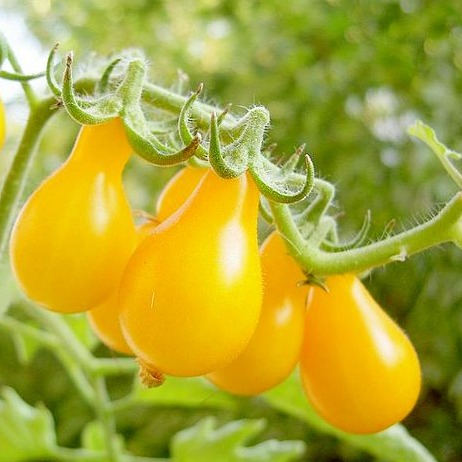 Раннеспелый (90-100 дней) сорт для парников и теплиц. Растение индетерминантное, среднерослое, высотой 1,2-1,3 м, слабооблиственное, формируется в один или два стебля. Кисти длинные, с 20-30 и более плодами на каждой. Плоды грушевидные, желтые, массой 25-30 г, плотные, сладкие.