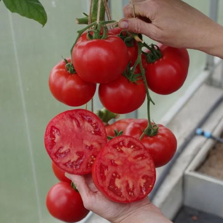 Гибрид среднеранний, индетерминантный. От полных всходов до начала созревания 100-115 дней. Растение компактное, междоузлия средние. Первая кисть закладывается над 8-9-м листом, последующие – через 2-3 листа. Плодоножка с сочленением. Плоды плоскоокруглые, среднеребристые, массой 250-300 г. Окраска незрелого плода – зелёная, зрелого - ярко-красного цвета. Вкусовые качества отличные.