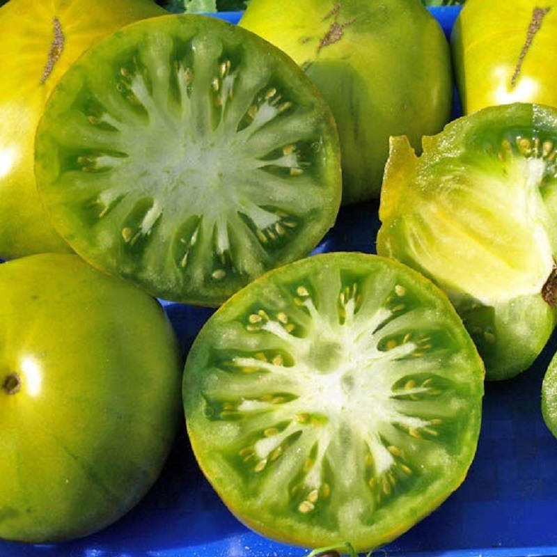 Киви – высокоурожайный сорт, плоды которого не краснеют, а остаются в изумрудном цвете. Аромат обладает фруктовыми нотками, поэтому любители томатов выбрали для него такое название. Насладиться первыми, вкусными помидорами можно через 110 суток после всходов. При созревании изумрудные плоды приобретают красивый золотистый румянец. Томаты крупные, массой 260-300 г, достигают 500-600 г. Мякоть зеленая и желто-зеленая, сладкая, нежная, сахаристая. Кожица прочная, не трескается. Плоды подходят для свежего потребления и «томатных десертов». Растения индетерминантные, завязывают отличный урожай в открытом и защищенном грунте. Урожайность в теплице достигает 12-13 кг/м2. Форма плодов может меняться в зависимости от условий.