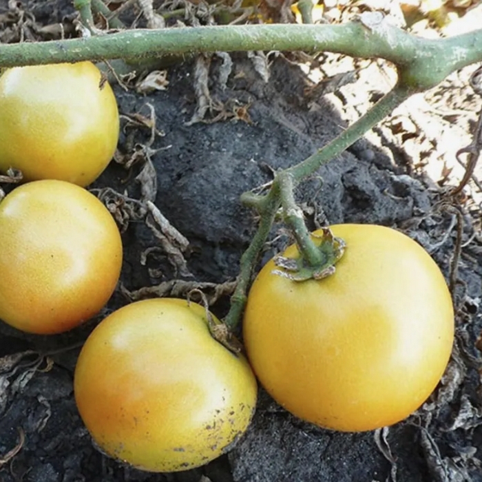 Позднеспелый сорт для открытого и защищенного грунта. Растение детерминантное. Плоды крупные, округлые и плоскоокруглые, массой 130 г, молочно-белого цвета, на растении не созревают, при достижении технической зрелости могут осыпаться. При полном созревании, через 30-40 дней после съема, они приобретают беловато-оранжевую окраску. Мякоть созревших плодов плотная, имеет яркий вкус и насыщенный аромат. Плоды пригодны для засолки, консервирования и свежего потребления. Предназначен для длительного хранения (до марта). Собирать плоды на хранение рекомендуется аккуратно, ни в коем случае не допускать повреждение.В марте семена высевают на слегка утрамбованный грунт, мульчируют торфом или почвенным слоем 1 см, поливают теплой водой через ситечко, накрывают пленкой и ставят в теплое (около 25°С) место. После появления всходов пленку снимают, рассаду размещают в светлом месте. В течение 5-7 суток температуру поддерживают на уровне 15-16°С, затем повышают до 20-22°С. В фазе 1-2 настоящих листьев рассаду пикируют. В фазе 8-9 настоящих листьев высаживают в защищенный или открытый грунт с соблюдением посадочного расстояния 40х40 см. Детерминантные томаты можно выращивать с формировкой в 3-4 стебля или без формировки. В период налива плодов рекомендуется произвести калийную подкормку. Урожай собирают в течение сезона по мере созревания. Недозревшие плоды могут дозариваться не на растении.