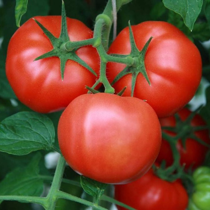 Среднеранний (100-105 дней) сорт для открытого и защищенного грунта. Растение детерминантное, высотой 1-1,2 м в открытом грунте и до 1,5 м в теплице, прекращает свой рост после формирования 6 плодовых кистей. Плоды насыщенно-красные, глянцевые, округлые, слегка уплощенные, массой 120-170 г, отдельные плоды могут достигать 350 г. Мякоть обладает ярким ароматом и гармоничным сладким вкусом с кислинкой. Плоды формируются в неправильных кистях массой до 2,5 кг; созревание дружное, за сезон с растения можно получить до 15 кг плодов! Сорт не требует формирования, хорошо устойчив к ряду заболеваний, в том числе фитофторозу, подходит для выращивания как в северных, так и в южных регионах.