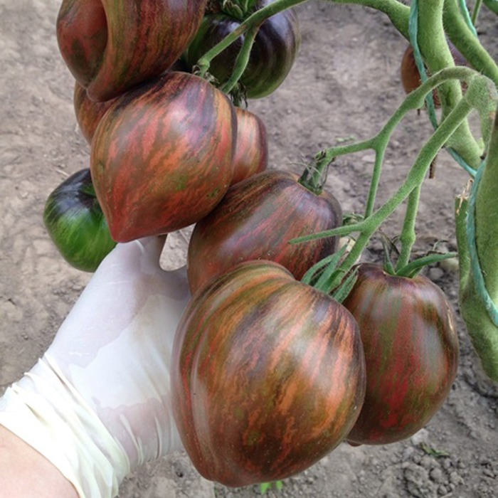 Агротехника: Семена высевают на рассаду за 65-70 дней до пересадки на постоянное место. При переносе молодых кустов на 1м2 площади размещают максимум 3 растения. Это позволит томатам получать больше света, благодаря чему усилится антоциановая пигментация, сладость плодов станет более насыщенной. Для приготовления оптимального грунта для рассады нужно сделать смесь из обычного грунта и цеолита. Пропорция: 4 части грунта и 1 часть цеолита. При высадке рассады добавьте 40-50 г цеолита в лунку. Результат вас удивит и порадует.