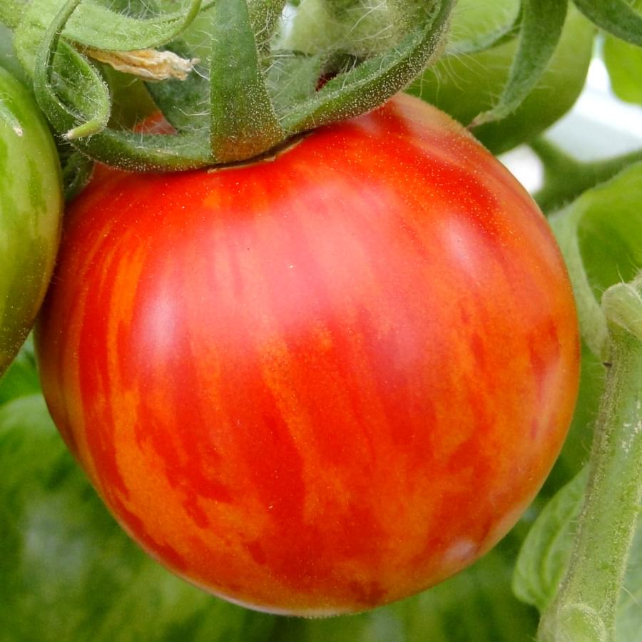 Раннеспелый (95-100 дней) сорт для открытого грунта и пленочных укрытий. Растение детерминантное, высотой 60-70см, штамбовое. Не требует обязательного пасынкования. Плоды овальные, малиновые с тонкими желтыми полосками, среднеплотные, массой 70-80 г, мясистые, отличного вкуса.