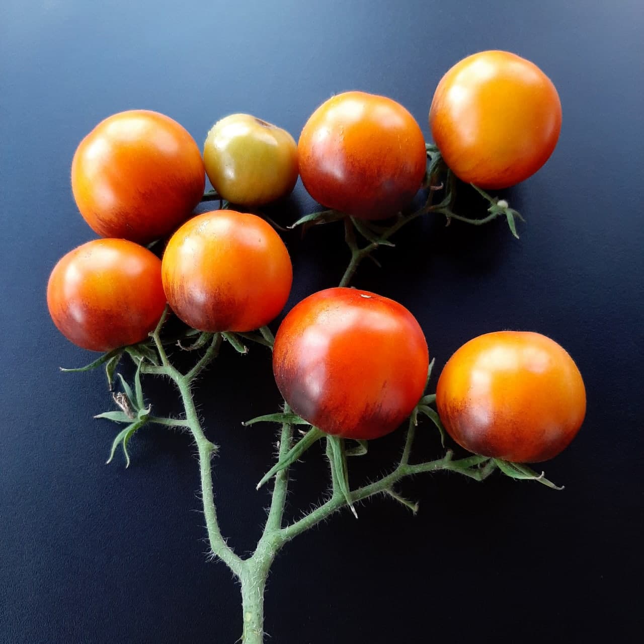 Новый сорт, выведенный в российском частном семеноводческом хозяйстве на основе американской «Палки», отличается от своего предшественника окраской плодов. В верхней части помидорок у него имеется тёмно-фиолетовый «загар», который при выращивании на ярком солнце становится почти чёрным. Этот полудетерминантный сорт (50-120 см) имеет колоновидную форму. Срок созревания плодов составляет 105-110 дней с момента появления всходов. Он формирует толстый, но хрупкий стебель, слегка опушенный и прямостоячий. От этого стебля отходят редкие вертикальные пасынки. Листья у этого сорта имеют гофрированную структуру, небольшой размер и расположены близко к стволу растения. Они скручены «розочкой» и имеют настолько короткий черешок, что кажутся прилепленными к побегам. Несмотря на свою небольшую площадь, листья не затеняют куст и придают растению экзотический вид. Плоды этого сорта имеют округлую форму и весят 30-40 г.
