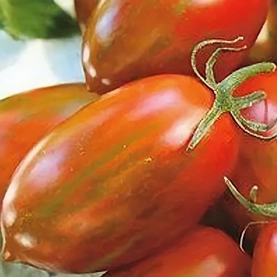 Среднеспелый (110-115 дней) экзотически красивый и вкусный темноплодный сорт селекции АФ «Сибирский сад» для теплиц и открытого грунта. Трехцветные плоды-загляденье, собранные в пестрые кисти настоящая сладкая изюминка летнего стола и украшение грядок. Кусты высотой до 2 м, темно-зеленые, мало подверженные заболеваниям, с длительным периодом урожайности. Кисть дружно созревающая, удлиненная, с 5-8 плодами массой до 40 г каждый. Томаты 2-3 камерные, вытянуто-сливовидные, с изящным небольшим носиком. Пестрые полосы придают плодам специфическую окраску от тёмно-бордовой до красно-коричневой с зеленовато-бронзовыми переливами. Мякоть темно-малиновая, сахаристая и сладкая с нежной кислинкой.