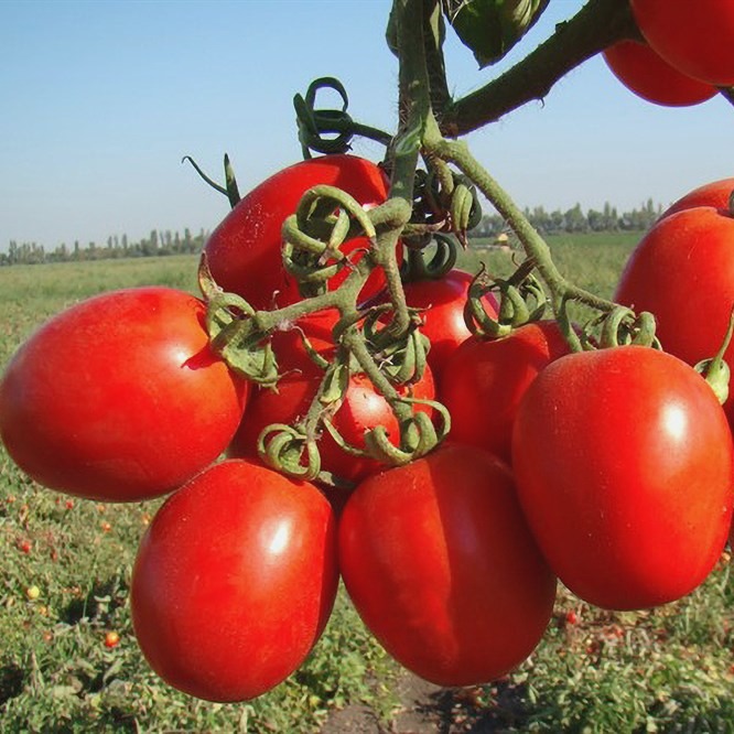 Раннеспелый (110-115 дней) сорт обладающий высокими вкусовыми и товарными качествами. Детерминантный высотой до 80см. Сорт рекомендован для выращивания в открытом грунте и временных укрытиях. Сорт сливовидной формы красного цвета массой 100-110гр. Устойчив к ВТМ и альтернариозу. Рекомендован для потребления в свежем виде и для цельноплодного консервирования. Норма посадки 3-4 растения на кв. м.