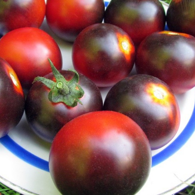 Очень красивый, высокорослый сорт с нарядными кистями по всему растению. Плоды завязываются на красивых коротких кистях, где сидят плотно друг к другу, как бусины. Плоды массой 30-40 г, словно глянцевые, малиново-фиолетовые с высоким уровнем антоциана на плечиках. В кисти может быть более 10-12 плодов. Сорт идеально подходит для бутербродов, салатов и нарезки. Урожайный, болезнеустойчивый. Требователен к солнцу и теплу, рекомендован для выращивания в теплице. Такой томат обязательно нужно иметь в коллекции, ведь он богат антиоксидантами и защищает наши клетки от старения!