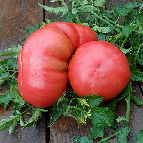 Куст высотой 150-170 см, кисти по 5-6 плодов. Цвет розово-малиновый, по 300-350г. Отлично подходит для свежего потребления, приготовления соков и зимних заготовок. посев на рассаду в марте. Обязательно обрезать верхушку и пасынковать, чтобы добиться равномерной освещённости и проветриваемости.
