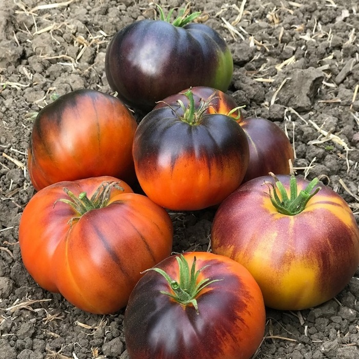 Среднеспелый (115 дней от всходов) индетерминантный сорт индиго томата, результат скрещивания сортов Биг Рэйнбоу, Чероки Пёрпл и Боско Блю. Растение высотой около 1.5 м, с обычными листьями. Плоды массой 270-350 г, с широкими антоциановыми плечами, по мере созревания меняют основной окрас от золотого до красно-оранжевого с небольшими желтыми полосками. Автор сорта Ли Гудвин сравнил это буйство красок с закатным солнцем среди грозовых туч. Аромат хорошо сбалансирован. Урожайность средняя.