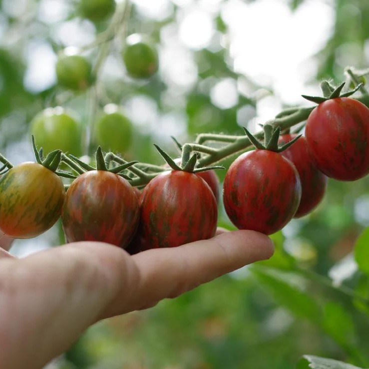 Ультраранний индетерминантный коктейльный гибрид томата с невероятно яркой тигровой раскраской плодов. В плодоношение вступает на 80-85 день после всходов. Растение мощное, с укороченными междоузлиями. Первое соцветие закладывается над 6-7 листом, последующие через 2-3 листа. В простой кисти формируется 8-10 округлых плодов массой по 35-40 г. Томаты имеют красно-коричневую окраску с темно-зелеными полосами. Плоды невероятно вкусные, сладкие, с повышенным содержанием сахаров и ликопина. Плоды идеальны для свежего потребления, консервирования, заморозки и вяления. Томаты очень плотные, лежкость и транспортабельность отличные. Гибрид подходит для снятия урожая целыми кистями. Рекомендуется умеренный полив во время созревания плодов. Гибрид устойчив к вирусу томатной мозаики,  фузариозному и вертициллёзному увяданию, вирусу скручивания листьев.