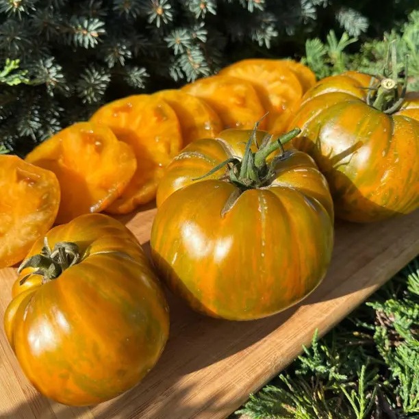 Крупноплодный, салатный биф-томат польской селекции с небывалой урожайностью – до 19-22 кг/м2! Привлекает внимание объемными кистями с 5-7 желтыми полосатыми плодами в каждой. Среднеспелый: созревание начинается через 110-115 дней после появления всходов. Индетерминантные кусты в теплице вырастают до 1,7-1,9 м. Средняя масса плодов* 250-300 г, первые достигают 570 г. Томаты ароматные, мясистые, сладкие с легкой кислинкой, деликатесного вкуса. Сорт устойчив к комплексу болезней культуры.
