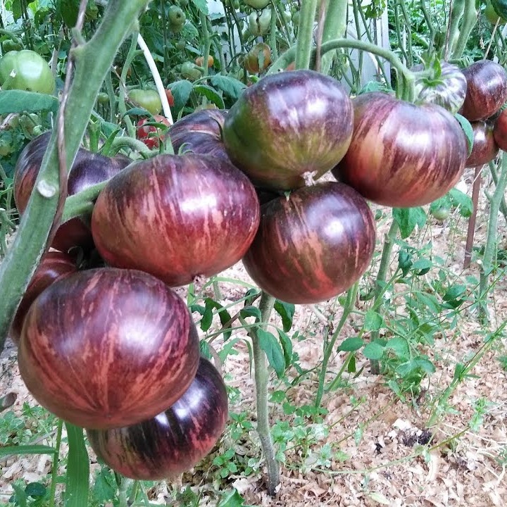 Этот сорт привлекает внимание своими красивыми тёмными плодами и высокой урожайностью. Он уже получил заслуженное признание среди садоводов, которые выращивают его в разных регионах страны. Относится к среднеспелым и созревает за 105-115 дней. Растение достигает 1,8 м в высоту в теплице и до 1,5 м в открытом грунте. Листья у него пониклые, а стебли прочные и толстые. Плоды очень красивые. Они имеют форму бифштекса и переливаются всеми оттенками коричневого цвета с полосками. Вес одного помидора составляет 300-400 г. Вкус у них отличный, сбалансированный, с выраженной сладостью. В недозрелом виде на плодах явно видны полоски по верху. Если разрезать спелый помидор, то можно увидеть, что мякоть у него красивого тёмно-вишнёвого цвета, густая и сочная. Вкус полностью сбалансирован, с небольшим присутствием терпких ноток.