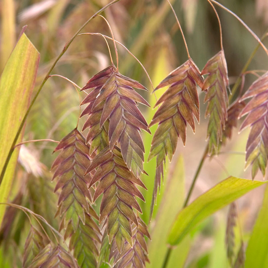 Хасмантиум широколистный или латифолиум (Chasmanthium latifolium) - многолетнее декоративное травянистое растение семейства Злаковые. Куст растет кочкой. Прямостоящие стебли достигают высоты 1-2 м, при выращивании в саду ограничиваются высотой 50-80 см. Стебли с низу до верха густо покрыты листьями сочно-зеленого цвета. С середины лета расцветка меняется: появляются ярко-желтые, лимонные, коричневатые, пурпурные оттенки. Листовые пластины вытянутые, прикреплены поочередно, длина составляет 20 см, ширина - около 2 см. В середине лета начинается цветение. В это время на концах стеблей на тонких цветоносах появляются соцветия в виде колосков длиной около 3 см. Они свисают на тонких стебельках как маленькие рыбки. Окраска сначала зеленая, к концу лета становится золотистой или красно-бурой. В таком виде растение остается и зимой. Так как растение зимой сохраняет свою привлекательность, то при возможности наблюдать эту красоту стебли осенью можно не обрезать, а сделать это весной до начала роcта. При благоприятных условиях возможен самосев. Размножается хасмантиум семенами и делением куста.