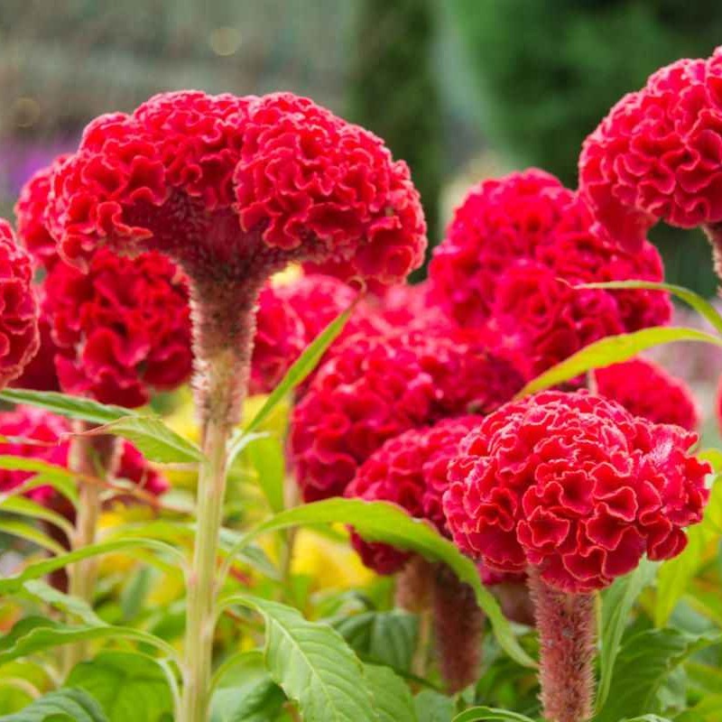 Однолетнее срезочное растение из семейства Амарантовые высотой 70-120 см с оригинальным крупным соцветием в виде гребня красной окраски и темно-зелеными листьями. Цветет с июля до заморозков. Целозия теплолюбива, светолюбива, относительно засухоустойчива, но молодым растениям необходим хороший полив. Предпочитает рыхлые, плодородные почвы.