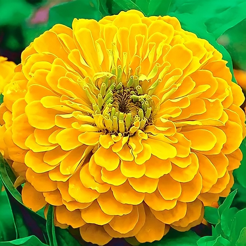 Неприхотливое однолетнее растение семейства Сложноцветные высотой до 70 см. Плотные, похожие на георгины, золотисто-желтые цветки сидят на прямых прочных стеблях. Цинии светолюбивы, очень засухоустойчивы, но боятся заморозков.