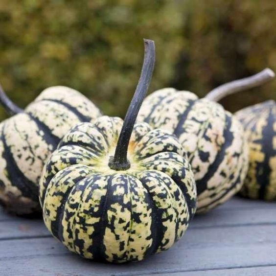 Особенно вкусный и декоративный сорт. От всходов до первого сбора 100-110 дней. Главная плеть длиной 150-200 см. На растении формируется 8-10 плодов. Тыквы диаметром до 10 см, массой 300-600 г. Мякоть от золотисто-желтого цвета до кремово-оранжевого. Сладкий вкус усиливается при обжаривании и запекании, а аромат напоминает каштаны. Плоды часто готовят целиком в духовке. Сорт хорошо хранится до середины зимы.