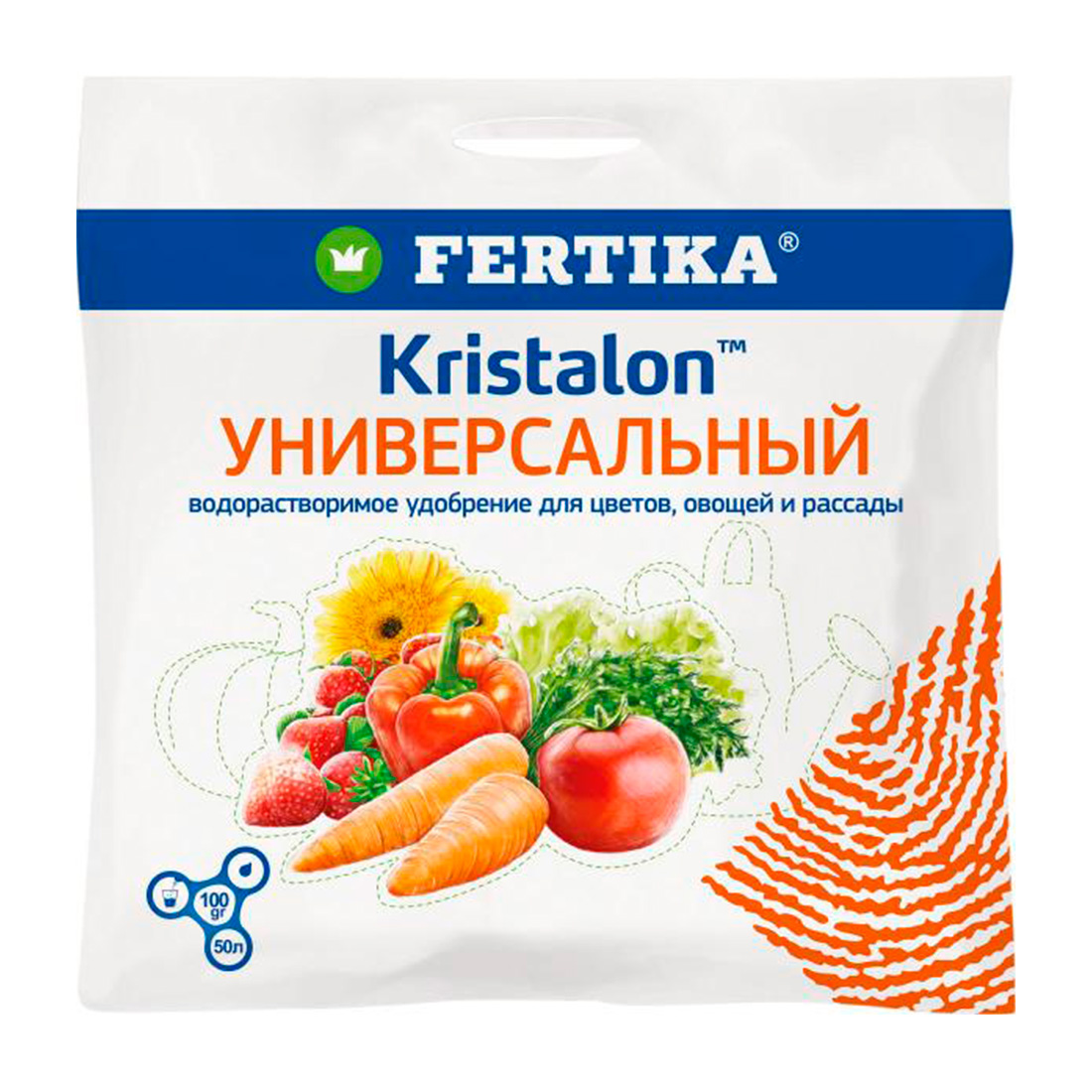 Fertika «Кристалон Универсальный» — это полностью водорастворимое комплексное азотно-фосфорно-калийное удобрение с микроэлементами. Оно предназначено для выращивания всех овощных и цветочных культур в открытом грунте и теплицах.