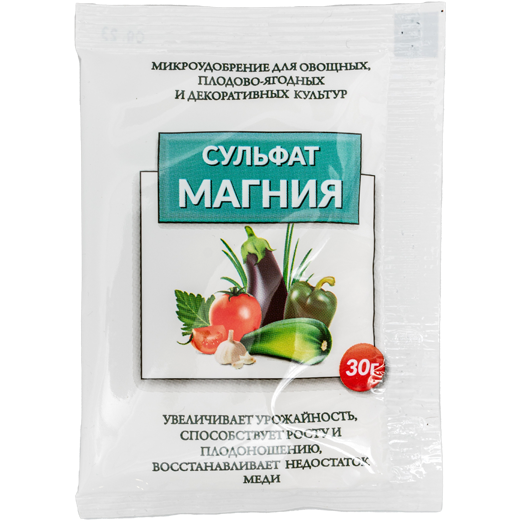 Сульфат магния  защищает растения от инфекций, повышает иммунитет, работает как антиокислитель в реакциях растений, оптимизирует условия для развития растений, позволяет добиться быстрого созревания плодов и улучшает их вкусовые качества.