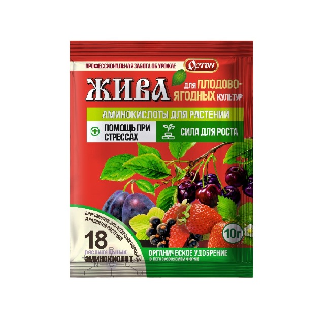 Органическое удобрение для плодово-ягодных культур - вишни, винограда, земляники и др. Содержит полный набор аминокислот, легко усваивается растениями. Повышает устойчивость растений к стрессам, стимулирует рост корней, завязывание и рост плодов, ускоряет созревание плодов, увеличивает урожайность.