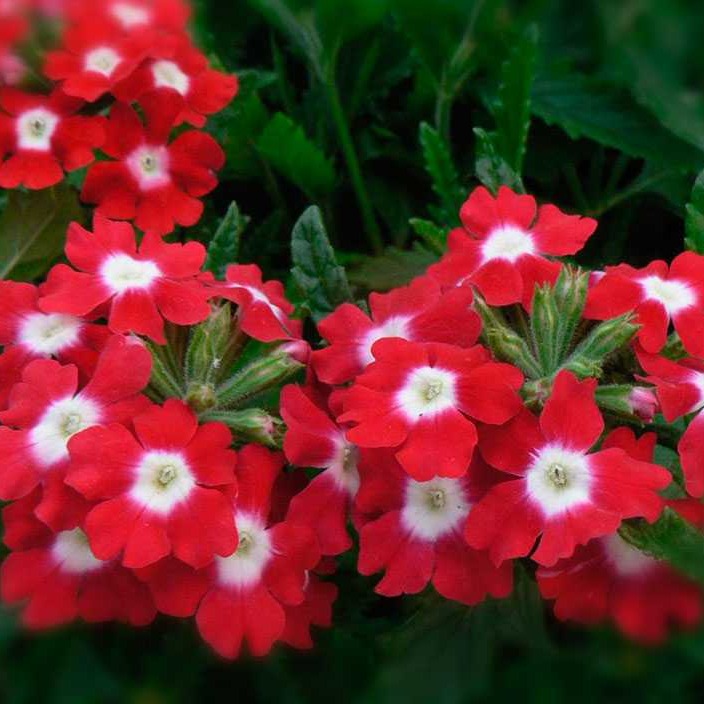 Неприхотливый однолетник. Высота растения 25 см. Диаметр цветка 5-6 см. Вербена идеально подойдет для любого садовода! Это уникальное растение не только украсит своими пышными соцветиями клумбы, цветники и рокарии, но также внесет приятное разнообразие в Ваш домашний садик. Миниатюрные кустики увенчаны соцветиями насыщенного красного цвета с белым глазком. Вербена отлично переносит посадку в ящики, контейнеры, горшки, может применяться в любых видах ландшафтного озеленения, так как прекрасно сочетается с бархатцами, розами, ромашкой и многими другими растениями.