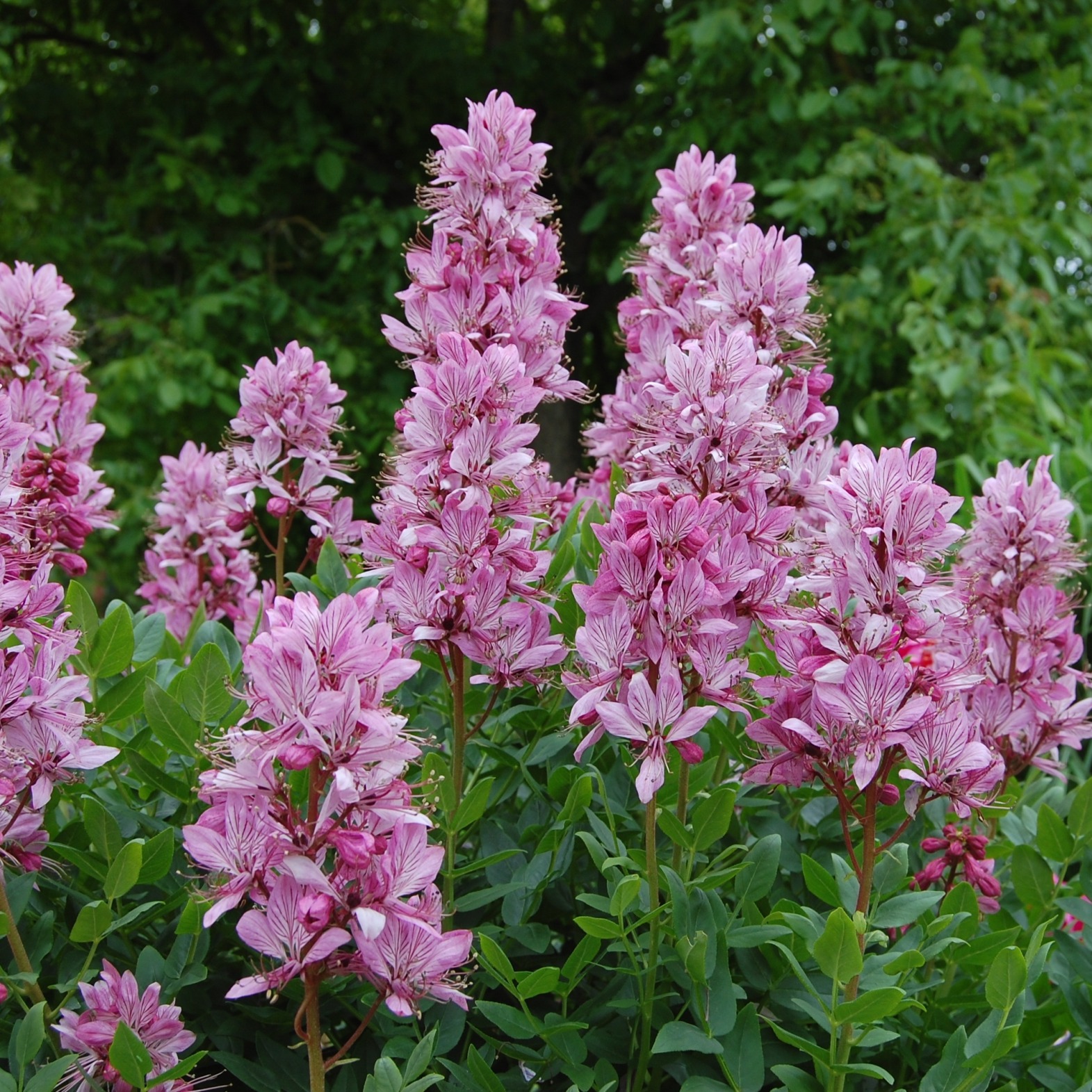 Один из самых красивых раноцветущих многолетников, относится к семейству Рутовые. Другое название - неопалимая купина. Отличается столь высоким содержанием эфирных масел, что если в период созревания семян, в сухую жаркую погоду поднести к растению зажженную спичку, оно на мгновение вспыхнет голубым пламенем. Куст стройный, компактный, высотой 80 см. Листья непарно-перистые, на длинных черешках. Цветки крупные, розовые, неправильной формы, с приподнятыми вверх лепестками; собраны в рыхлое метельчато-кистевидное соцветие до 20-25 см длиной. Цветет в июне-июле. Предпочитает теплые солнечные места на участках с дренированной почвой.